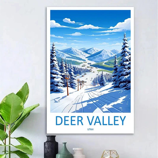 Deer Valley Utah Ski Resort Vintage Snowy Travel Travel Poster Print Wall Art