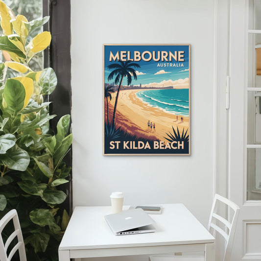 St Kilda Beach, Melbourne, Australia Home Decor Premium Quality Vintage Travel Poster Print Choose Your Sizes