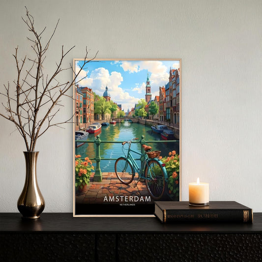 Amsterdam Netherlands Painting Travel Poster Print Wall Art
