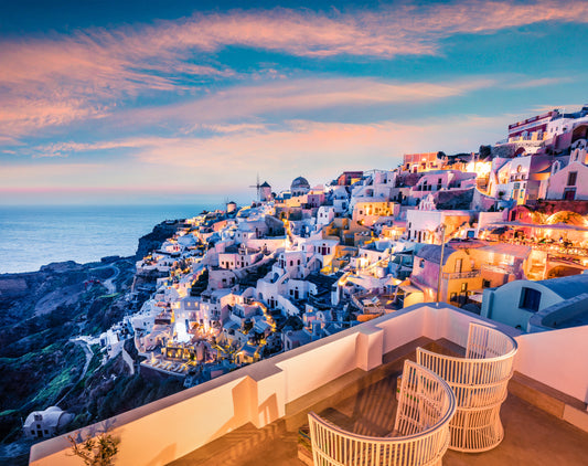Wallpaper Murals Peel and Stick Removable Greek Resort Oia Evening view of Santorini Iisland High Quality