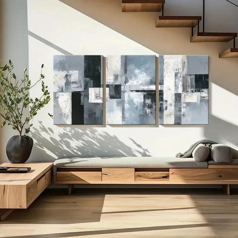 3pcs Abstract Art Geometric Design Monochrome Metal Print Ready to Hang Art