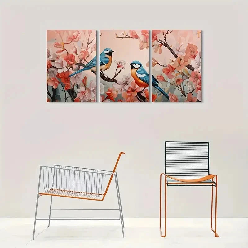 3pcs Charming Floral with Birds Wall Art Set Canvas Framed 60x90cm - High Quality Print 100% Australian Made Wall Canvas Ready to Hang