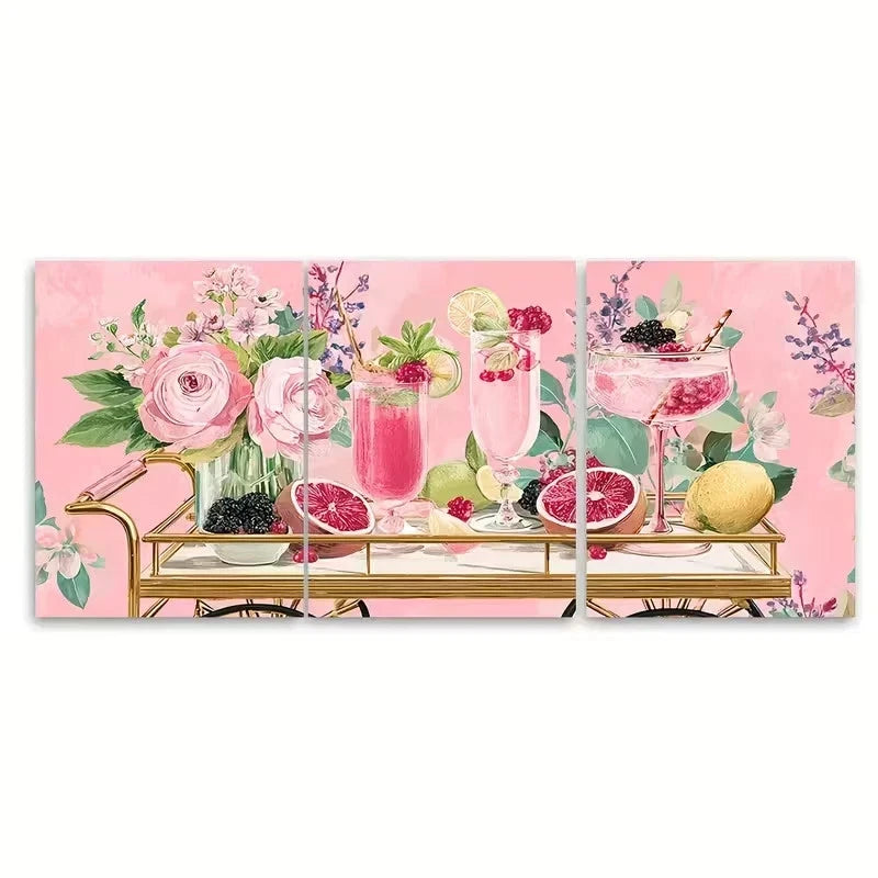 3pcs Keep Em Coming Cocktail Print Wall Art Set Canvas Framed 40x60cm - High Quality Print 100% Australian Made Wall Canvas Ready to Hang