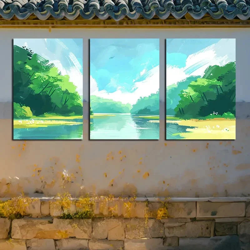 3pcs Modern Abstract Blue Lake Scenery Metal Print Ready to Hang Art