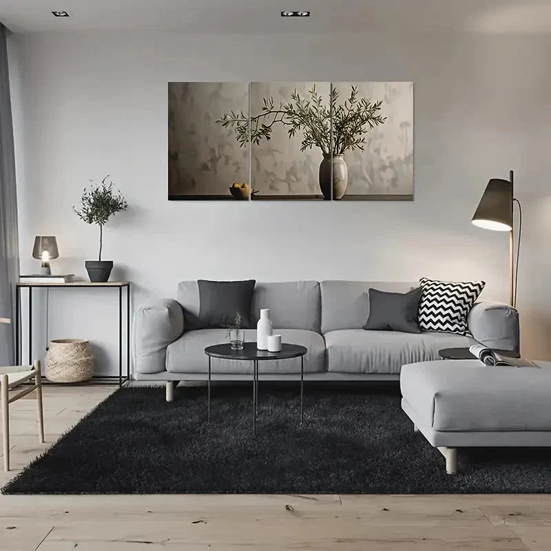3pcs Nature Olive Branches in Vase Wall Art Set Canvas Framed 60x90cm - High Quality Print 100% Australian Made Wall Canvas Ready to Hang