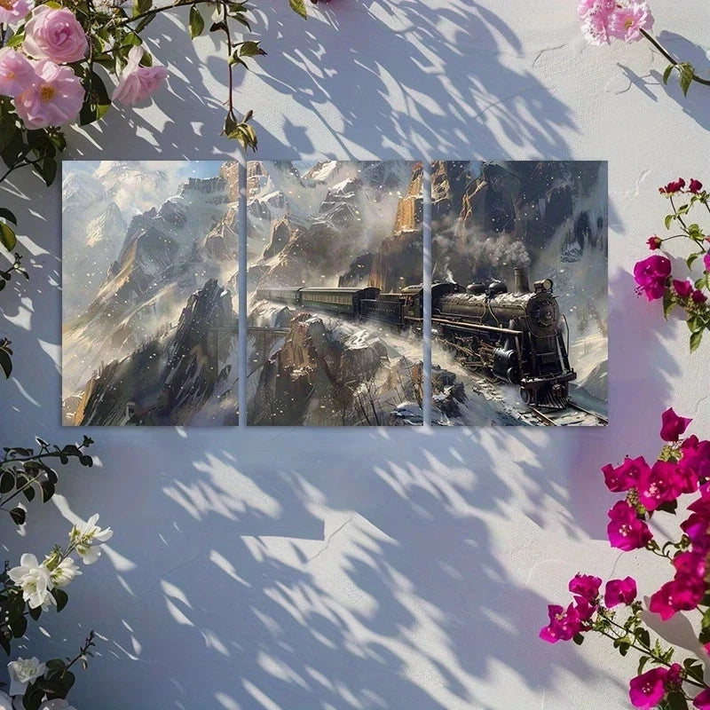 3pcs Steam Train with Black and Green Colors Metal Print Ready to Hang Art