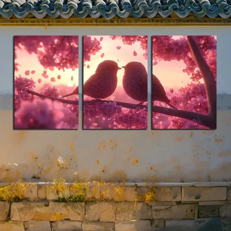 3pcs Vibrant Birds on Tree Branches Metal Print Ready to Hang Art