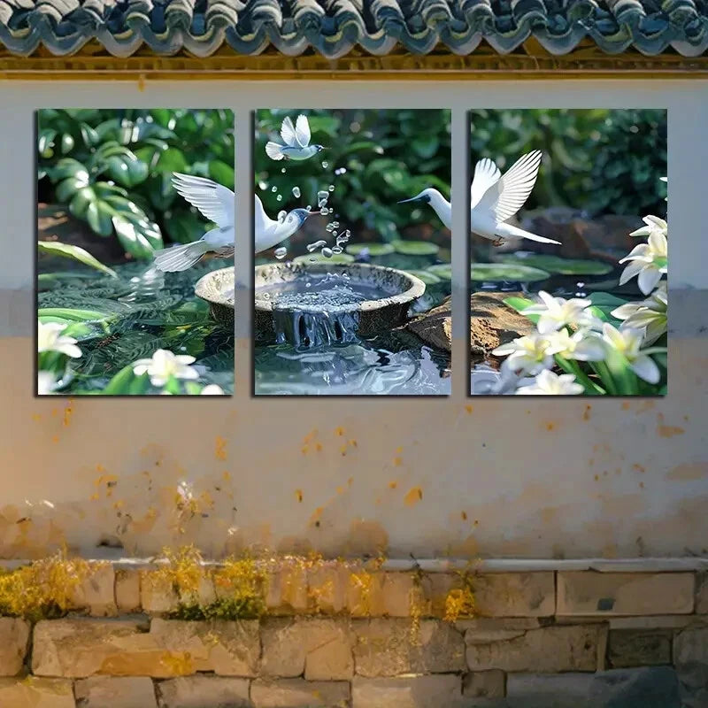 3pcs Vibrant Peace Dove with Lake and Florals Metal Print Ready to Hang Art