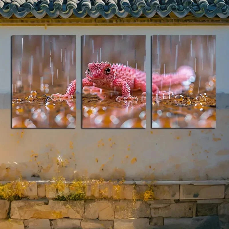 3pcs Vibrant Pink Salamander Illustration Metal Print Ready to Hang Art