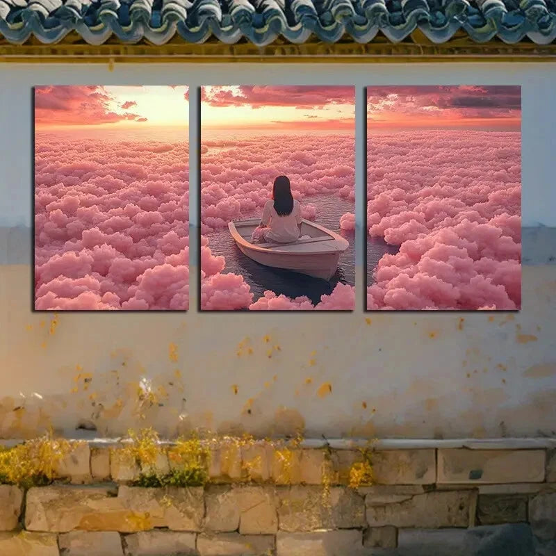 3pcs Vibrant Serene Boat on Clouds Design Metal Print Ready to Hang Art