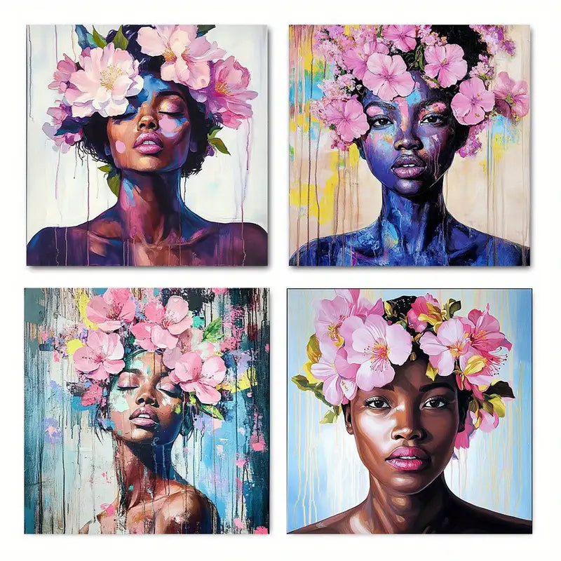 4pcs Abstract Art Flowe Art Deco Wall Art Canvas Framed