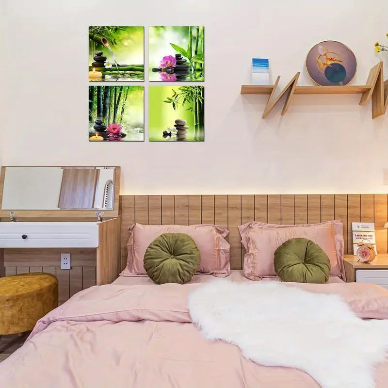 4pcs Bamboo Green Nature Zen SPA Wall Art Canvas Framed