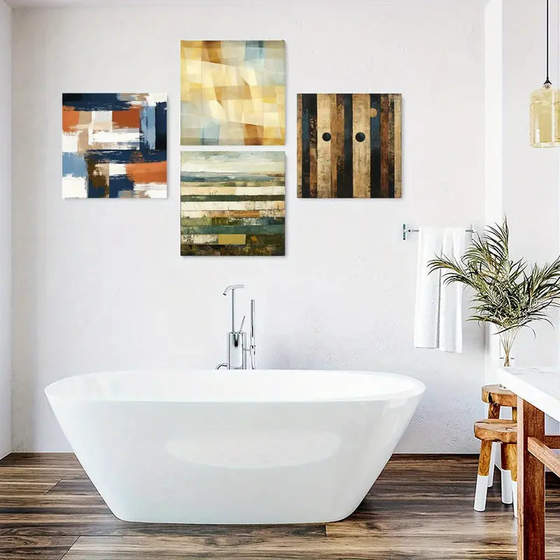4pcs Blue, Orange, Gray & Brown Color Block Desi Wall Art Canvas Framed