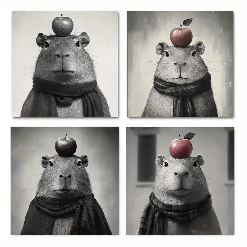 4pcs Capybara Winter Themed Art Deco Classic Wall Art Canvas Framed