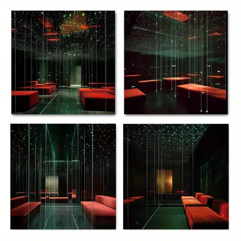 4pcs Chic Mirror Hallway Wall Art Canvas Framed