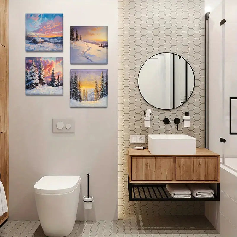 4pcs Clouds Decorative Painting, Mountains Wall Art Canvas Framed
