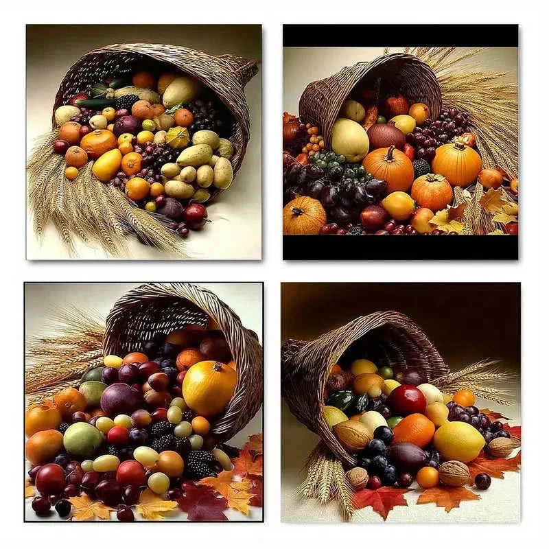 4pcs Fruit, Food & Flowers Wine Wall Art Canvas Framed