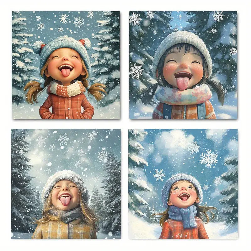 4pcs Girl Snowflake Grove Wall Art Canvas Framed