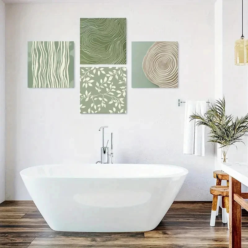 4pcs Green & White Geometric & Floral Designs Wall Art Canvas Framed