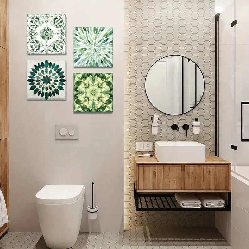 4pcs Nature-Inspired Green Tint Wall Art Canvas Framed