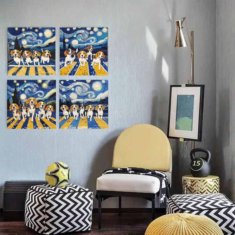 4pcs Occasion Art Decorations Puppies FD Wall Art Canvas Framed