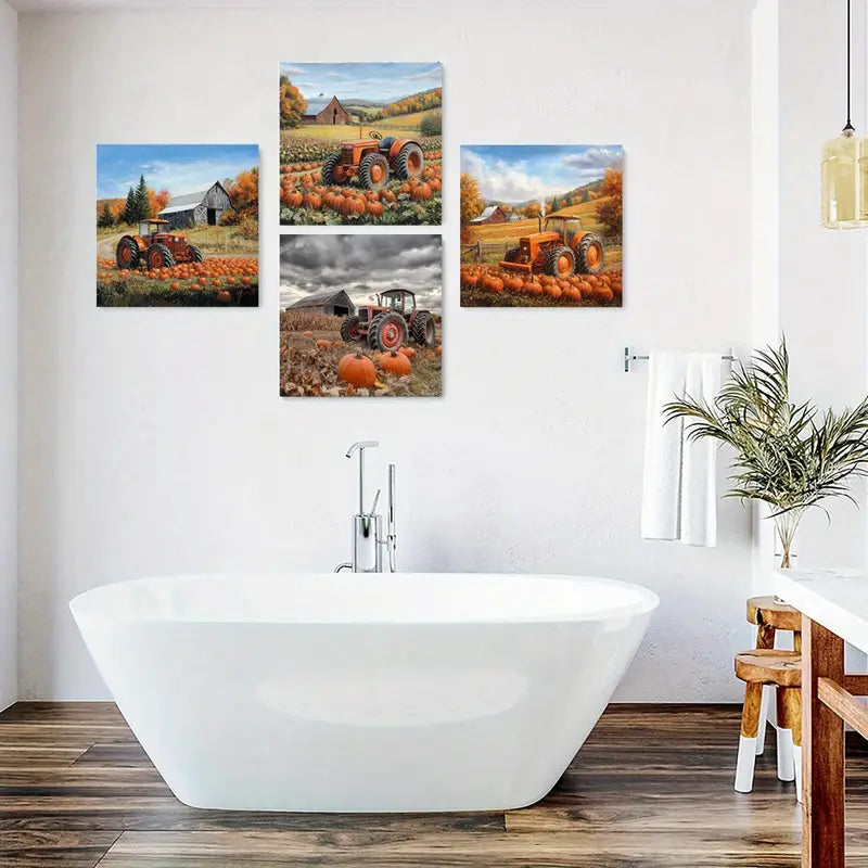 4pcs Pumpkin Decorative Artwork, Fields Wall Art Canvas Framed