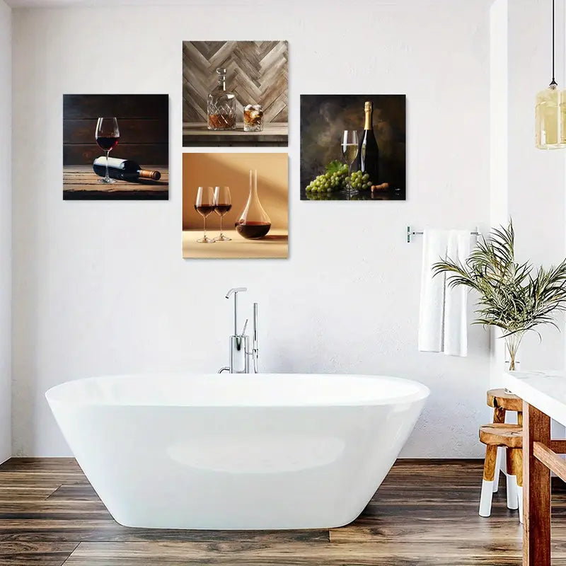 4pcs Whiskey Posters, Wine Glass Wall Art Canvas Framed