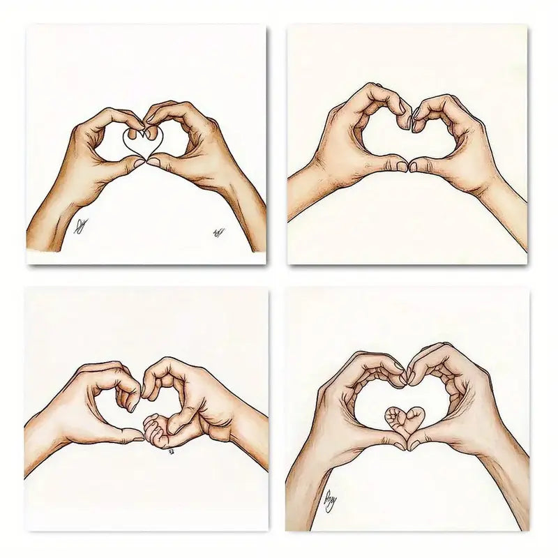 4pcsAbstract Family HandsWall Art Canvas Framed