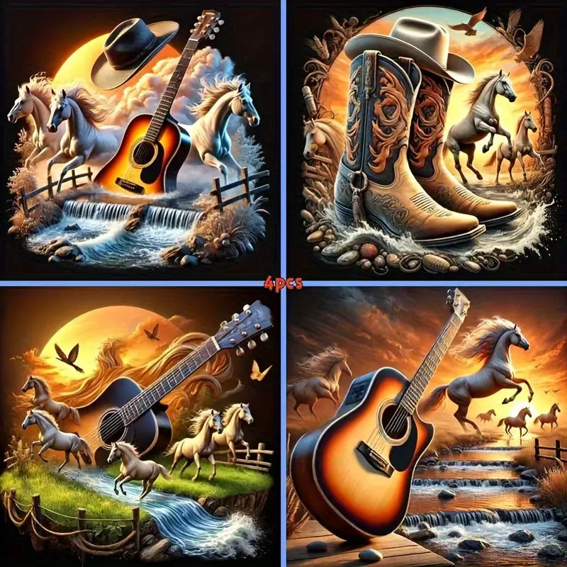 4pcsFull Round Crystal Diamond Sewing Mosaic Wall Art Canvas Framed