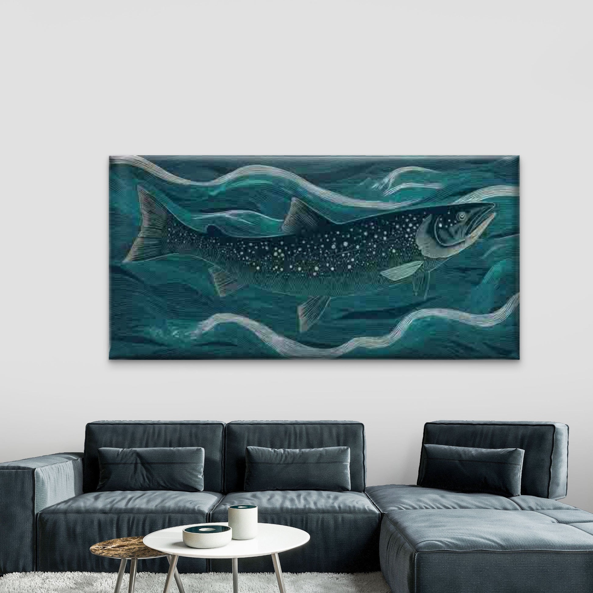 Abstract Fish Ocean Waves Wall Art Canvas Office Home Room Framed 120x60cm