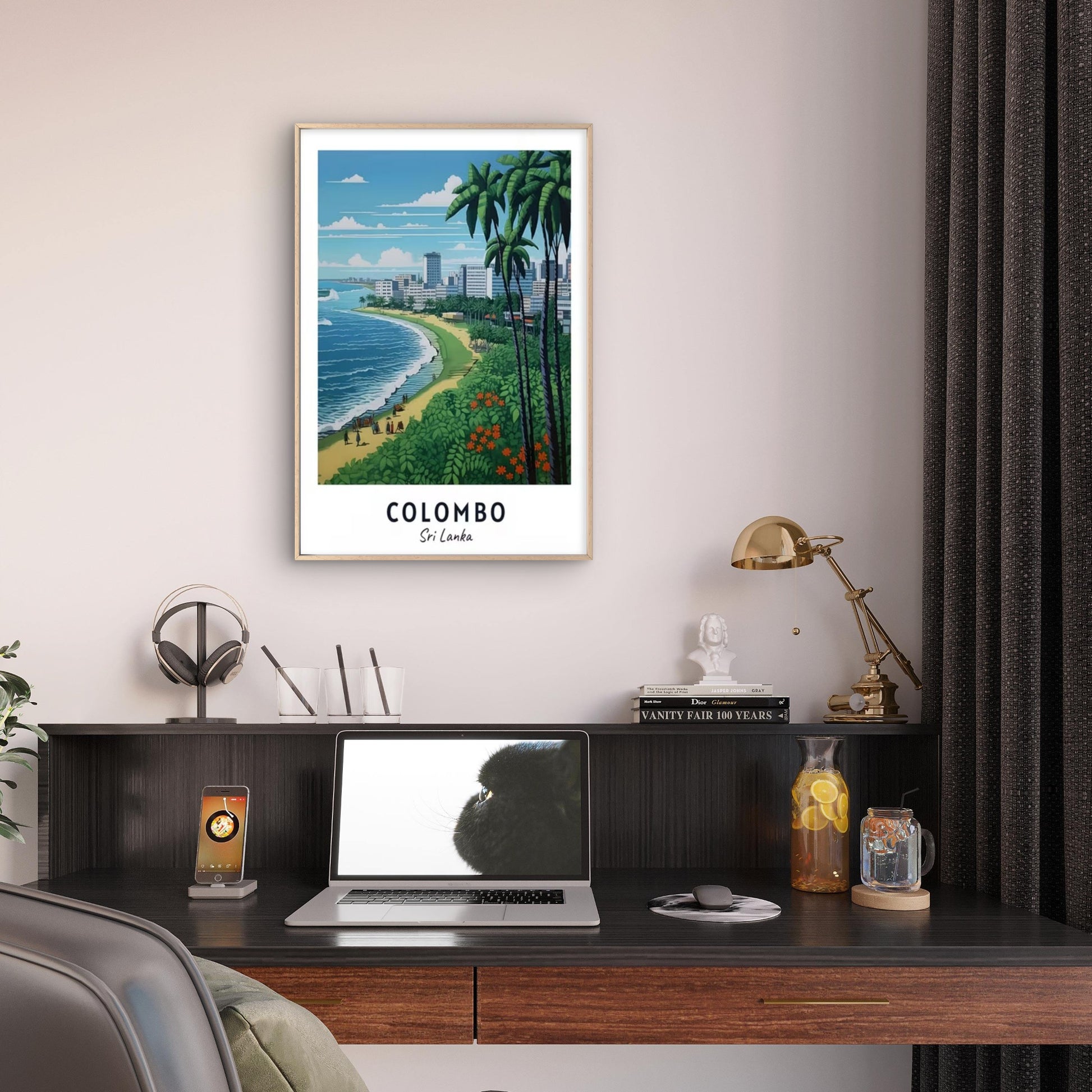 Beach Cityscape in Colombo Sri Lanka Travel Poster Print Wall Art