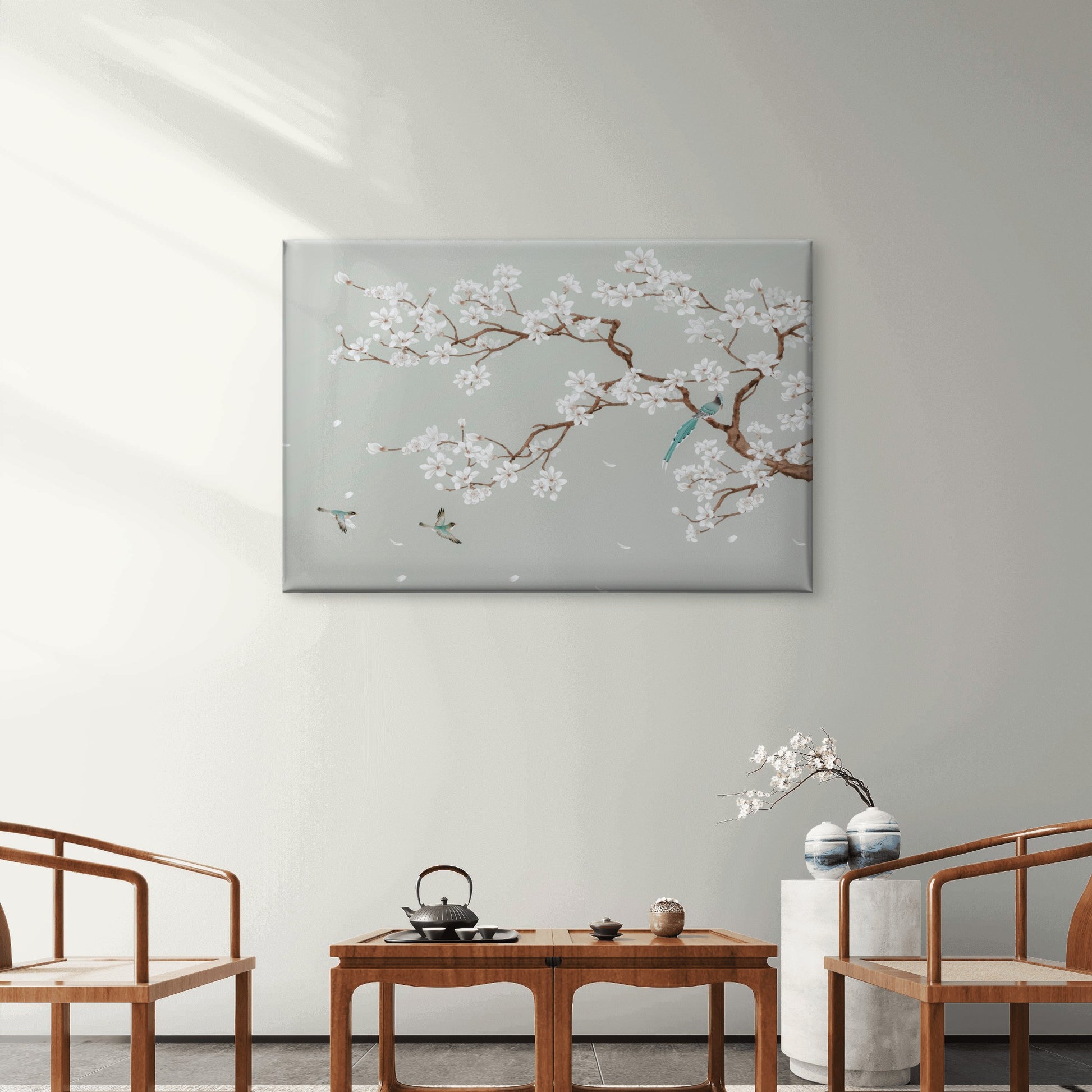 Chinoiserie Style Blooming Magnolia Tree Branch and Songbirds Wall Art Decor 100% Australian Made