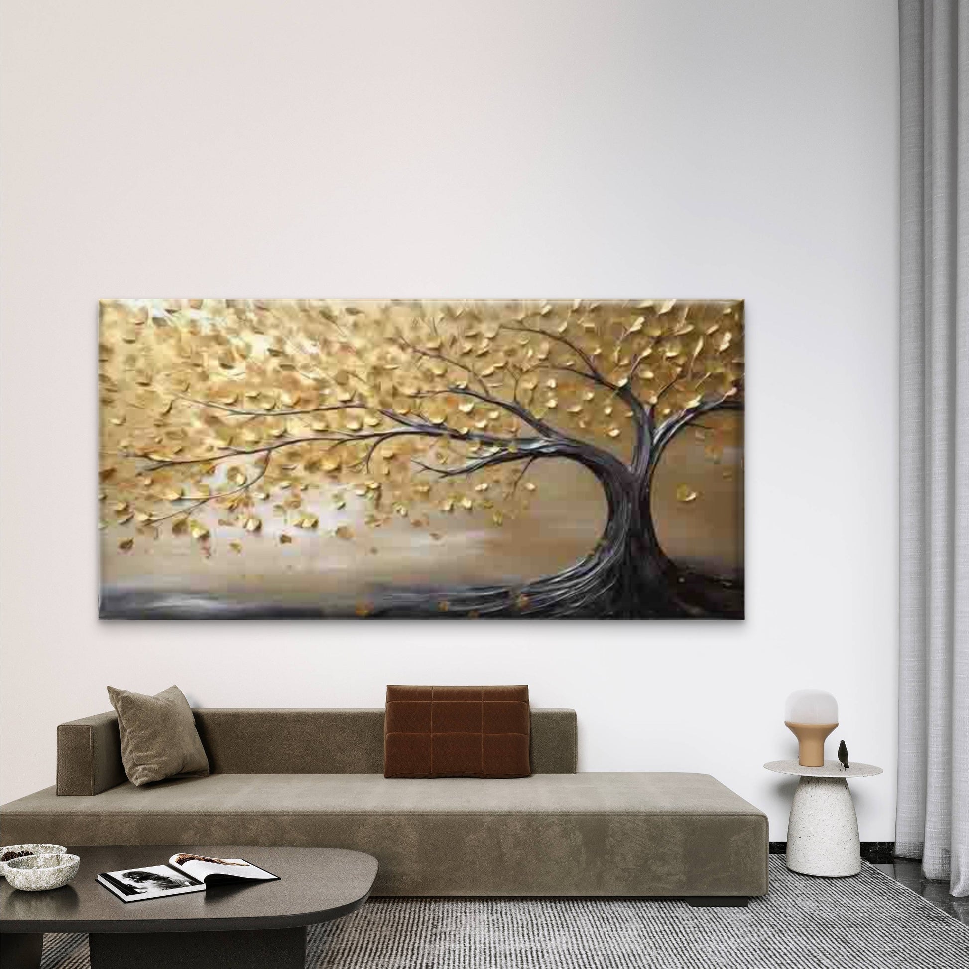 Golden Tree Falling Leaves Wall Art Canvas Office Home Room Framed 120x60cm
