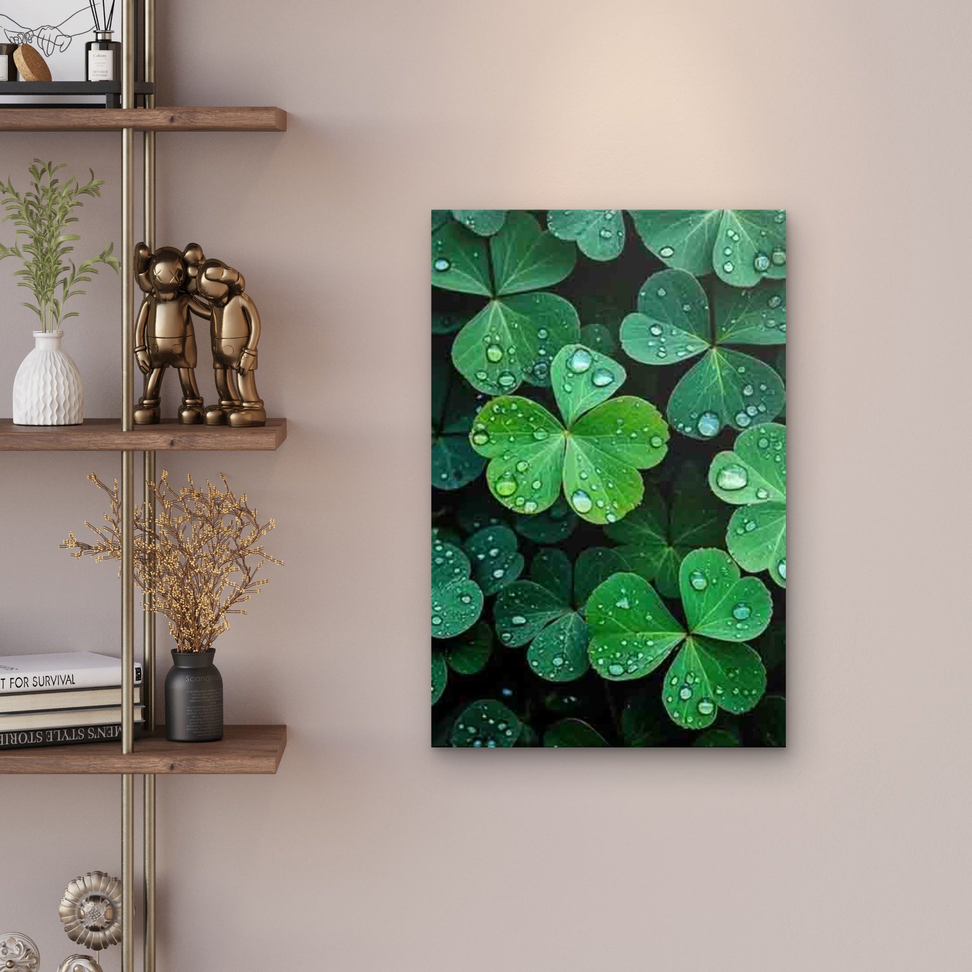 Minimalist Retro Four-Leaf Clover Metal Print Ready to Hang
