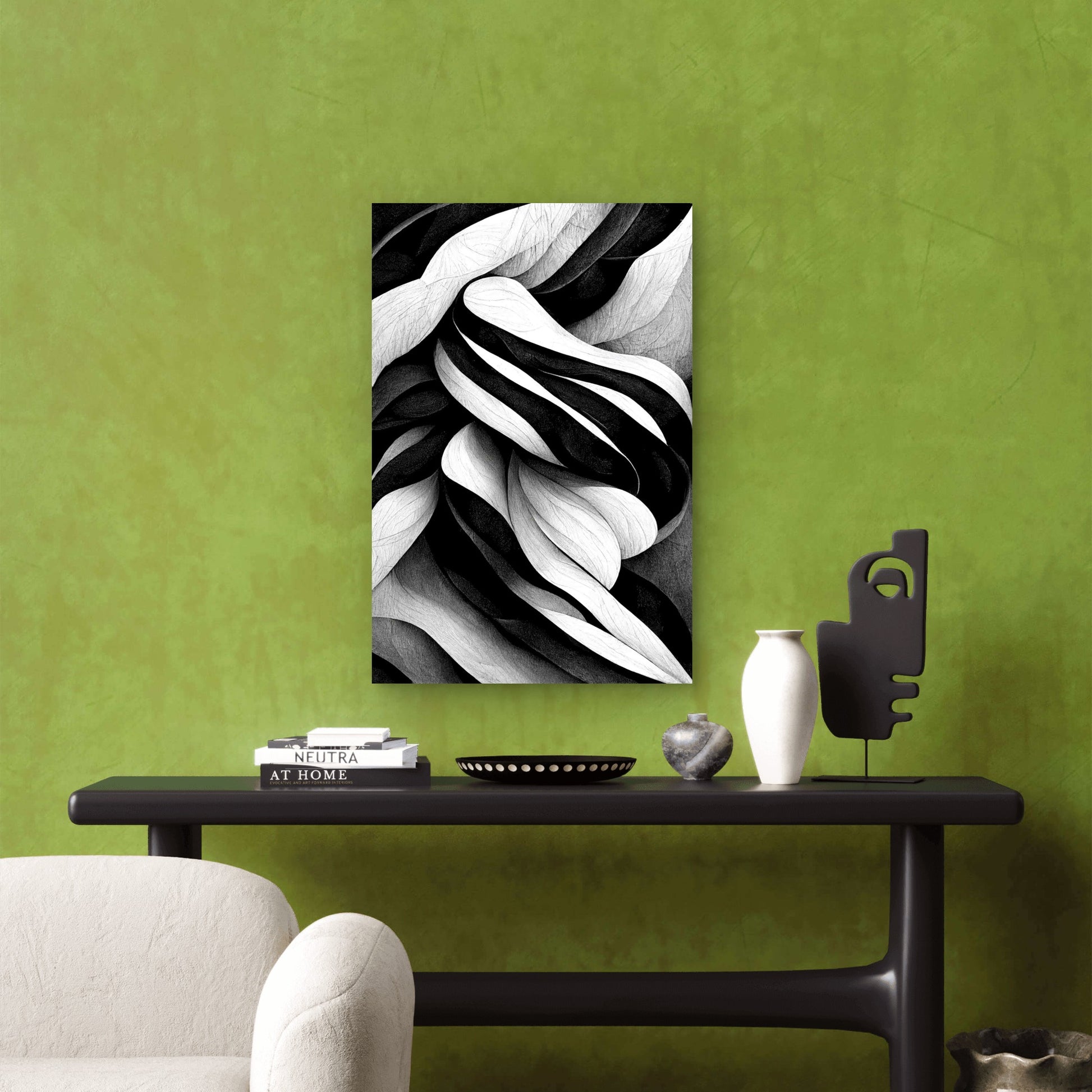 Modern Abstract Dynamic Shapes Black And White 60x90cm Metal Print Ready to Hang