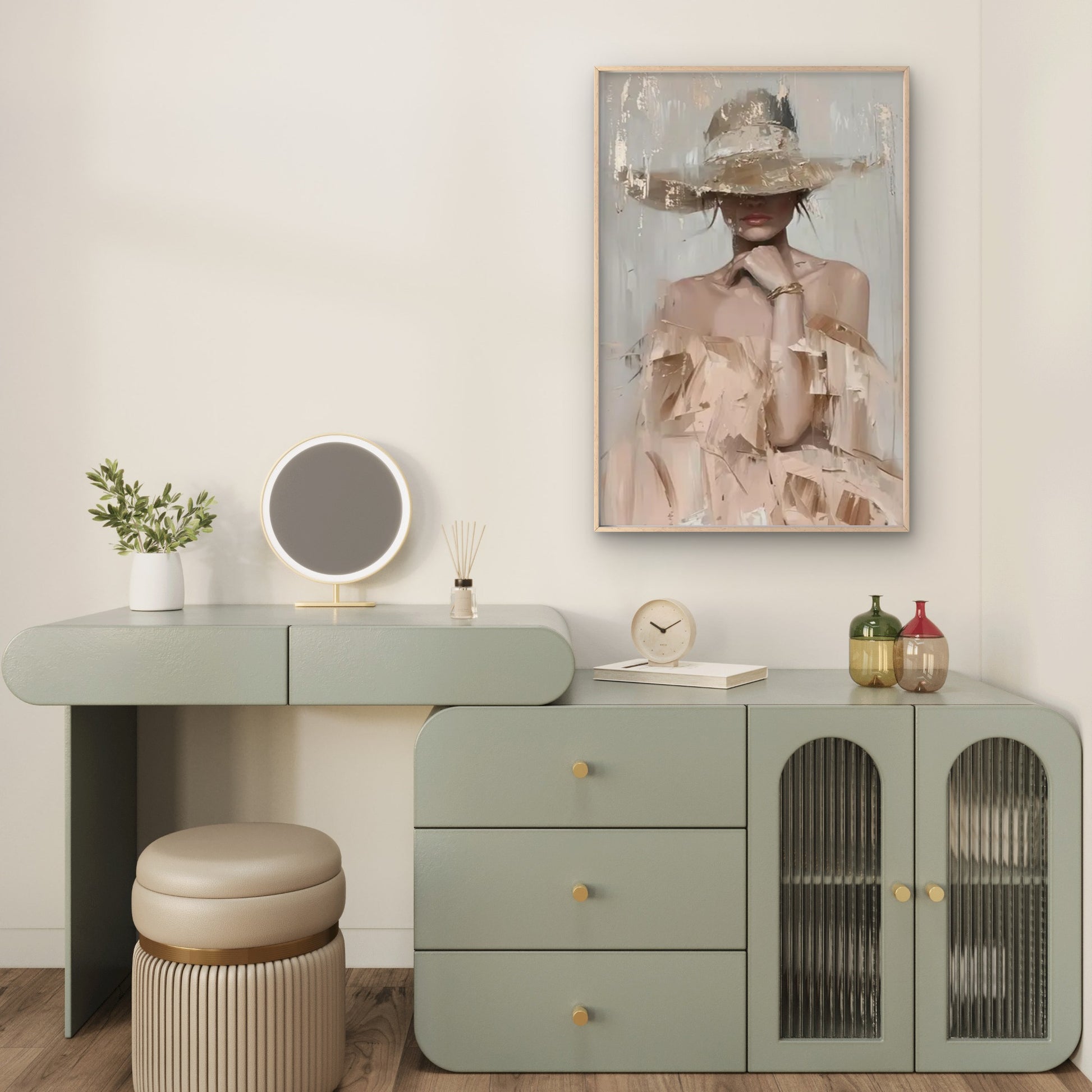 Modern Pastel Toned Painting Abstract Woman wearing Stylish Hat Fashion Home Decor Premium Quality Poster Print Choose Your Sizes