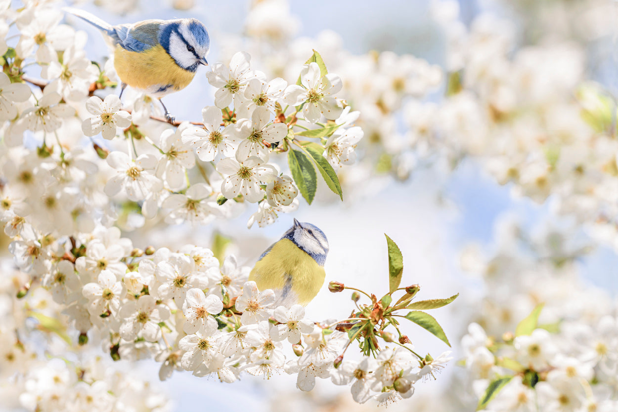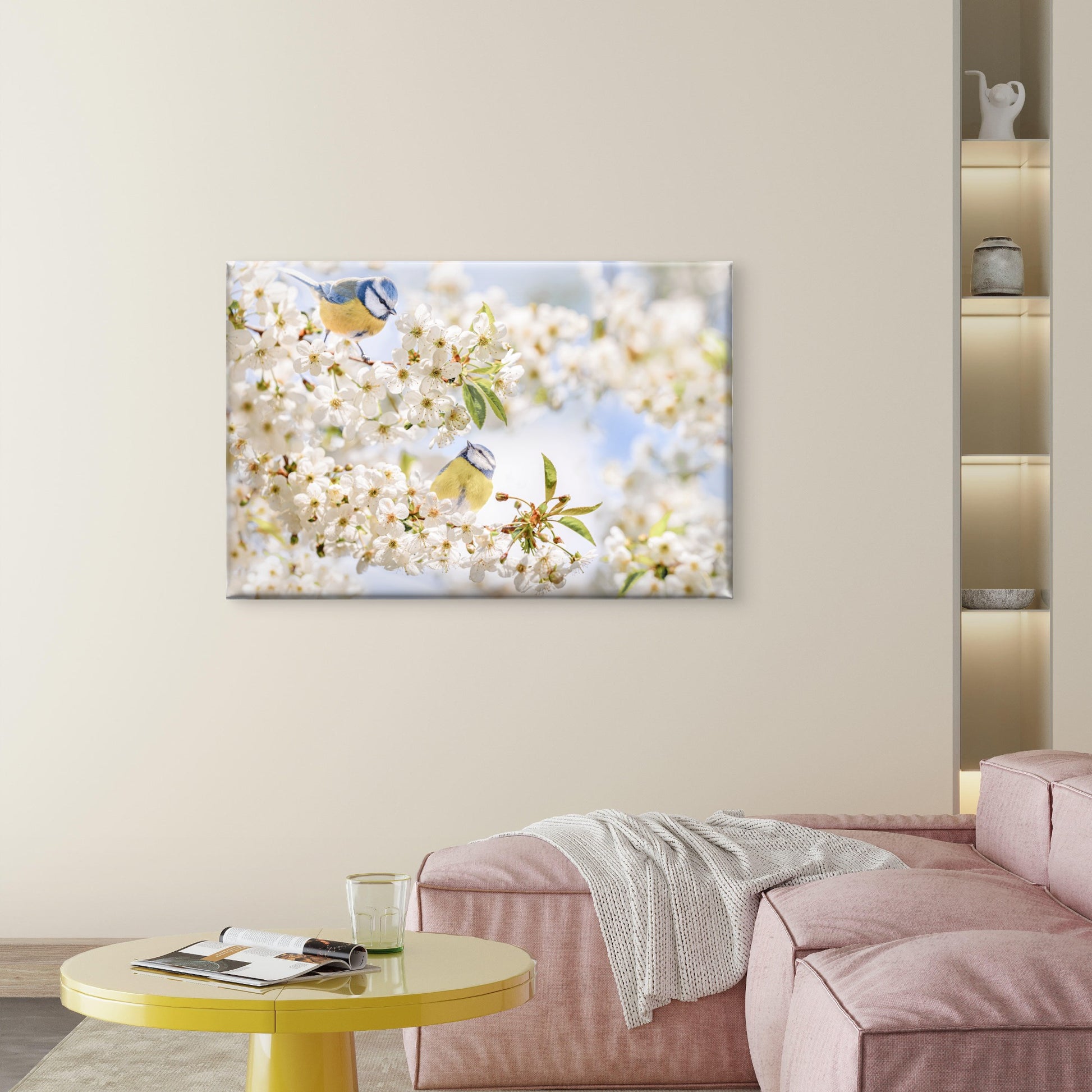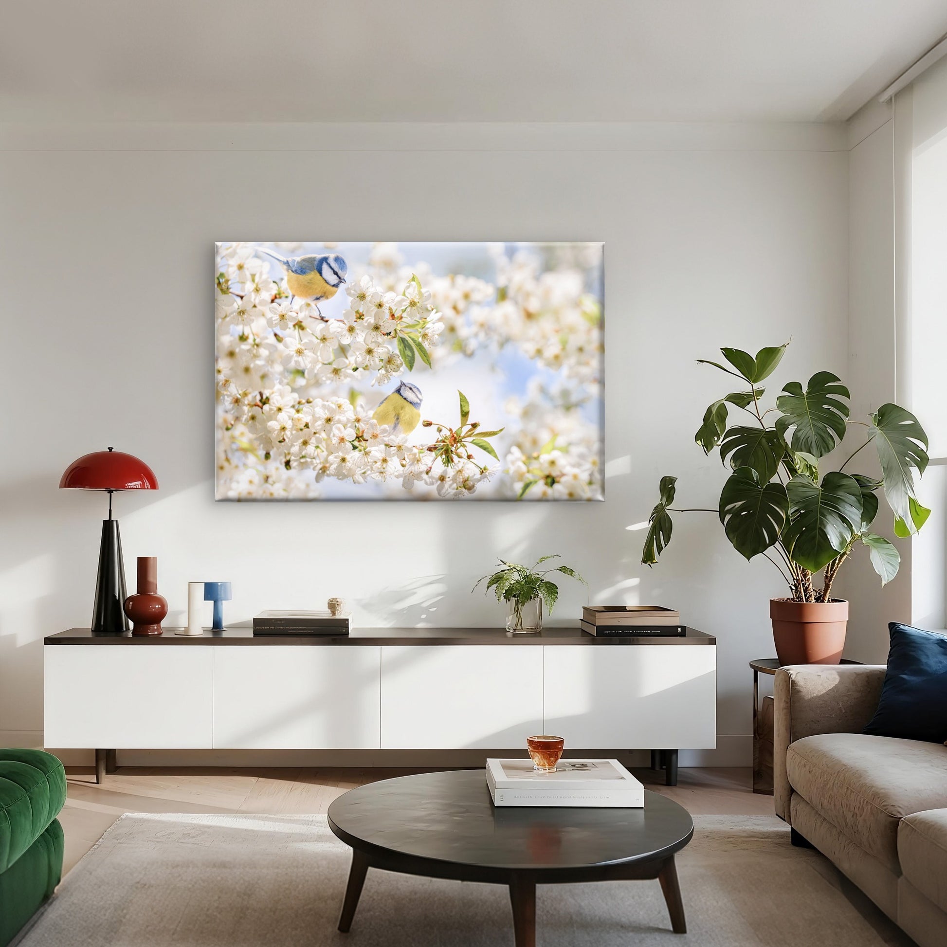 Pastel Toned Blue Tit Birds in Blossom Springtime Nature Wall Art Decor 100% Australian Made