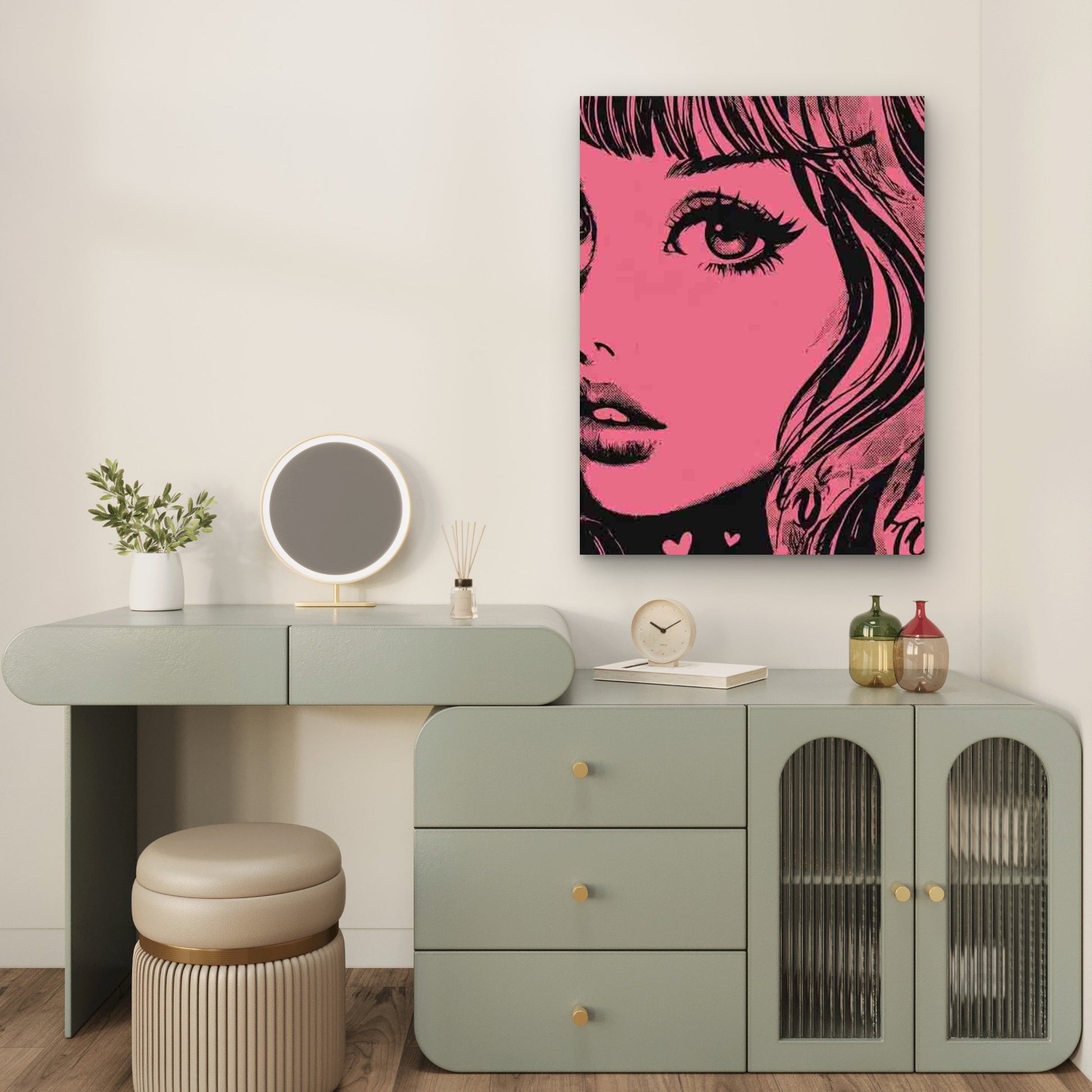 Pink & Black Vintage Woman Face Metal Print Ready to Hang