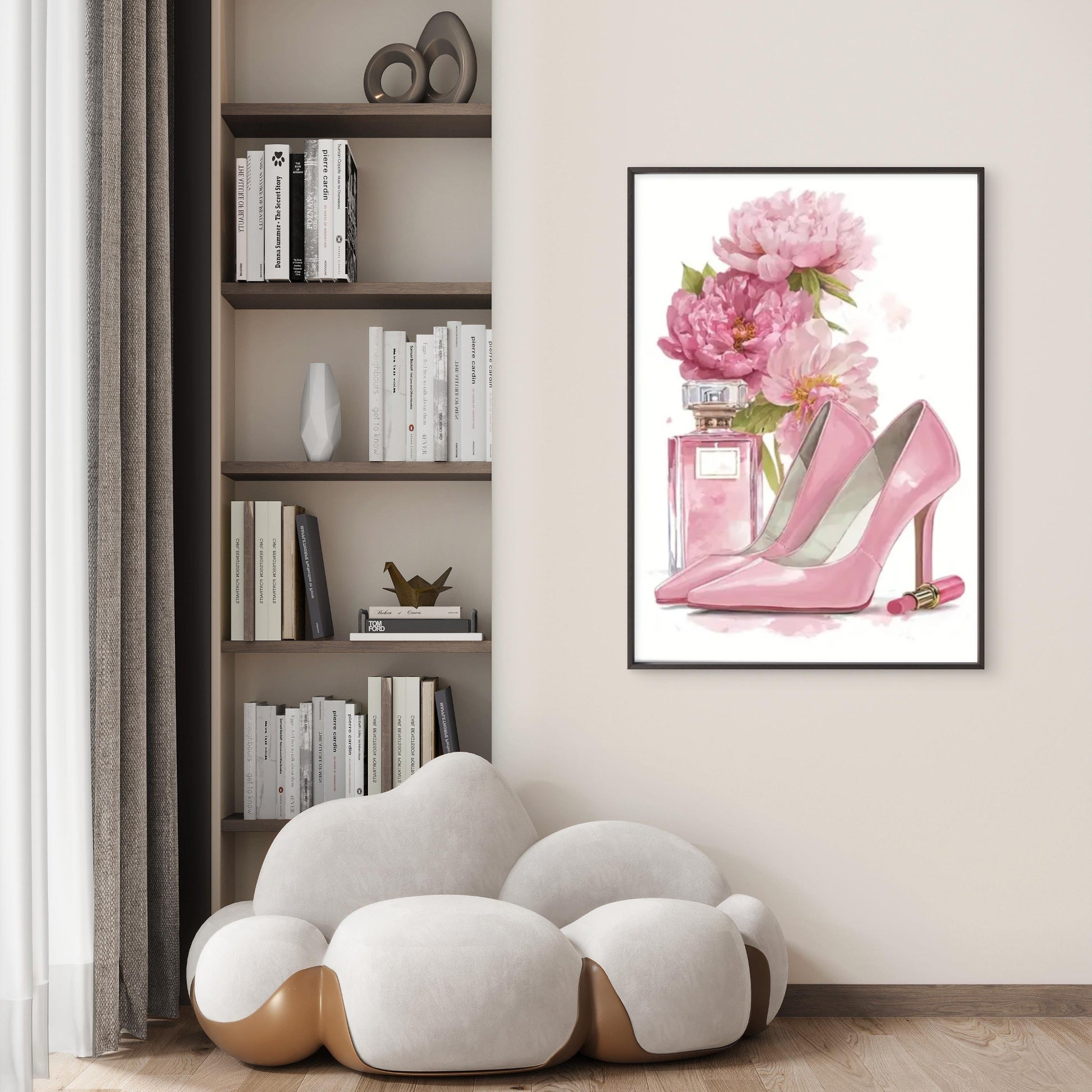 Pink High-Heel Shoes and Perfume Bottles Floral Fashion Home Decor Premium Quality Poster Print Choose Your Sizes