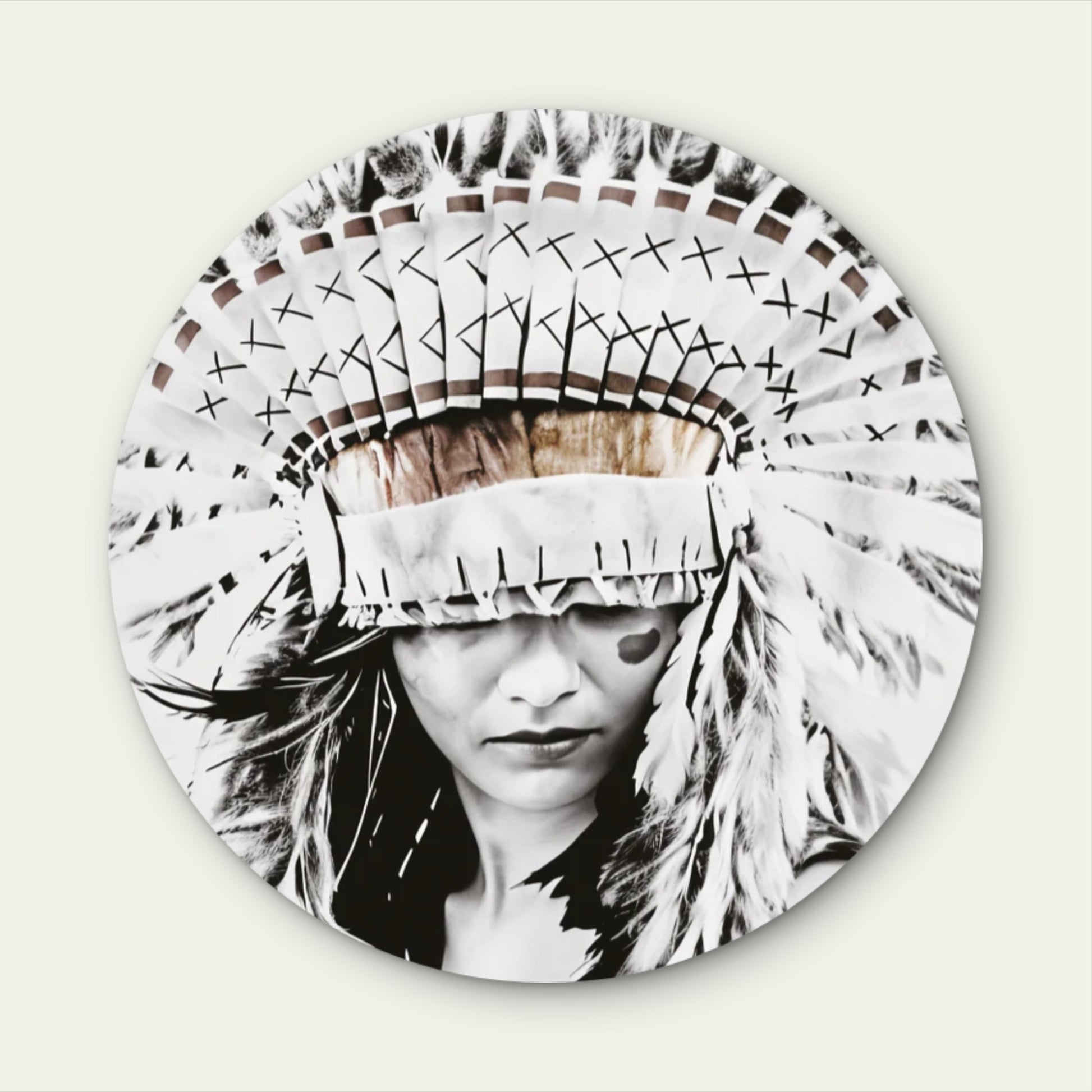 Red Indian Woman Headdress Neutral Color Acrylic Glass Rounded Print Tempered Glass Wall Art 100% Made in Australia Ready to Hang