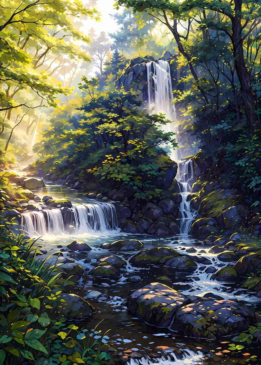 Tropical Forest Stream Waterfall 40x60cm Metal Print Ready to Hang