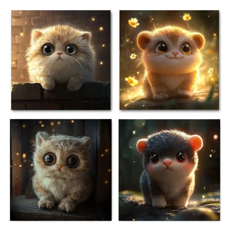 V4pcs Adorable Kitten Charming Kitten CH Wall Art Canvas Framed