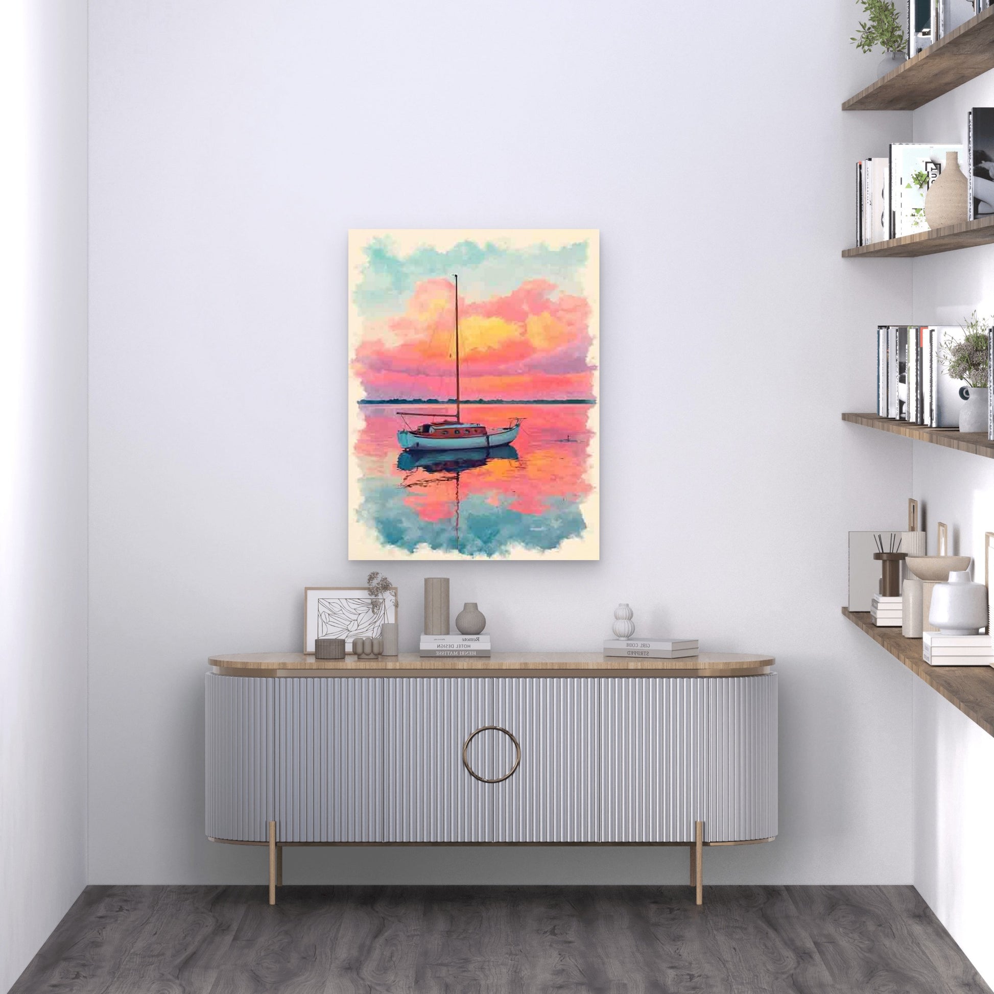 Vibrant Pink & Orange Sunset Nautical Metal Print Ready to Hang