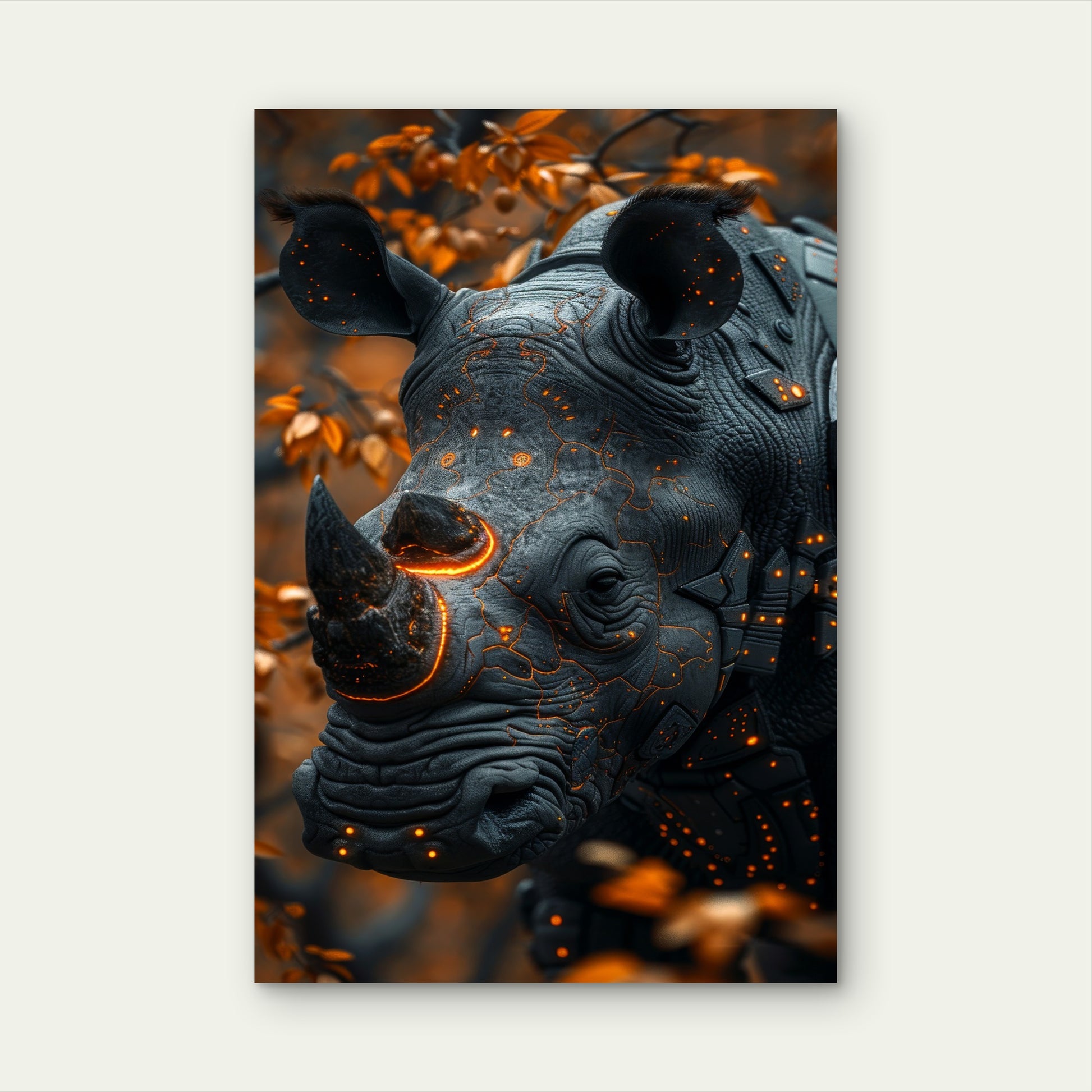 View Rhinoceros Animal With Futuristic Robotic Parts 60x90cm Metal Print Ready to Hang