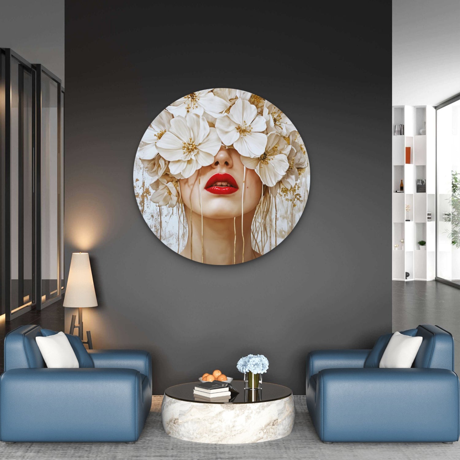 White Flower Blooming Woman Acrylic Glass Rounded Print Tempered Glass Wall Art 100% Made in Australia Ready to Hang