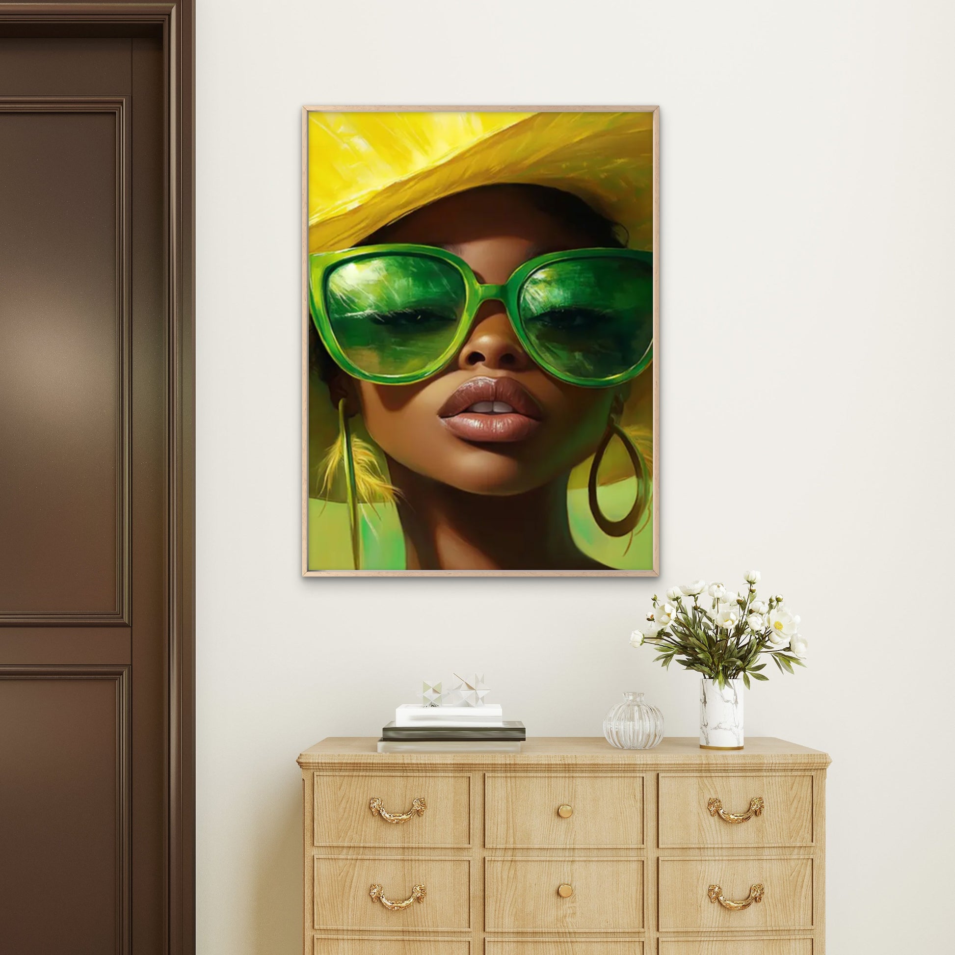 Woman with Yellow Hat and Green Glasses Painting Fashion Home Decor Premium Quality Poster Print Choose Your Sizes